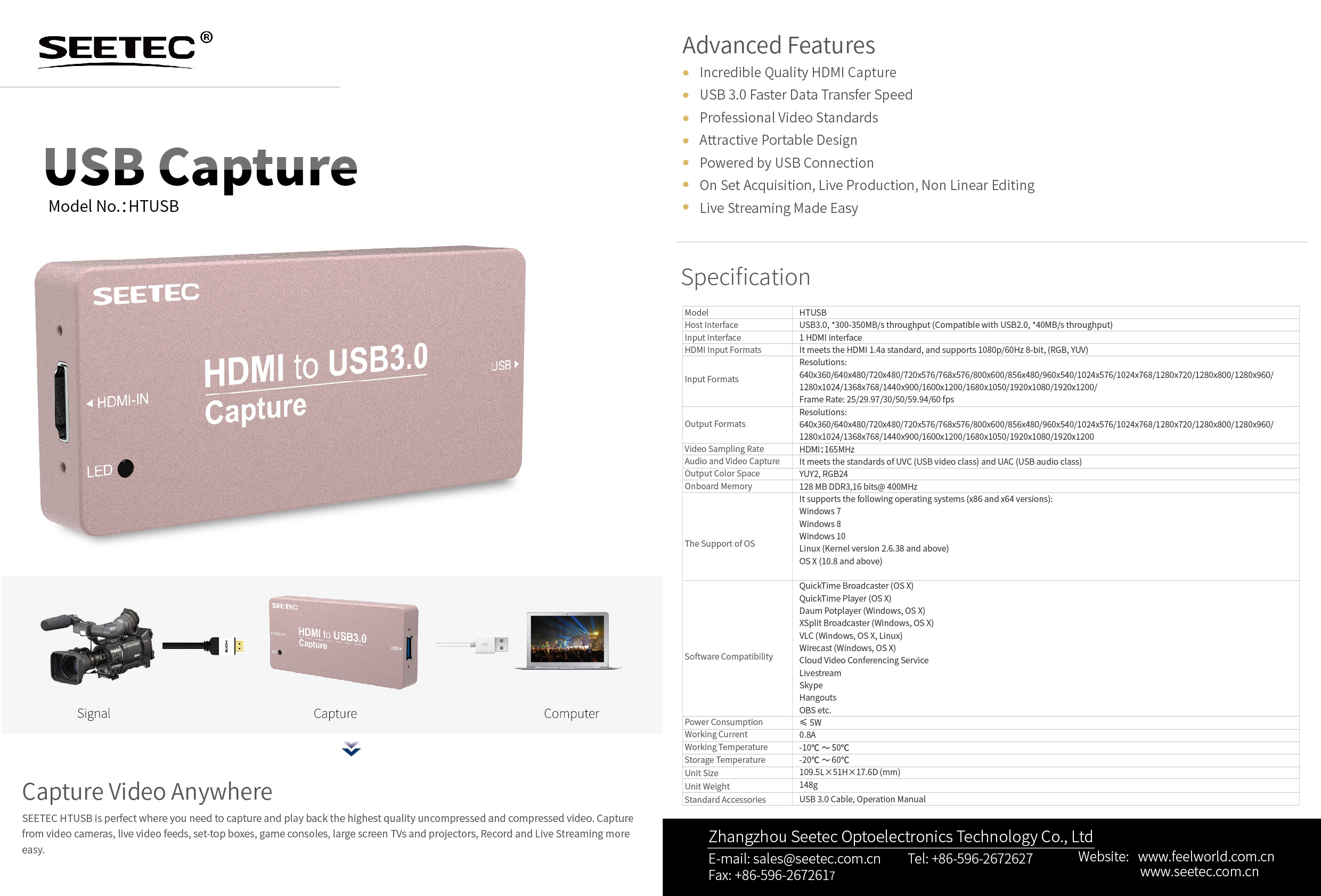 HTUSB works with the world's most popular editing software and provides high quality connections so you can handle all types of video formats.